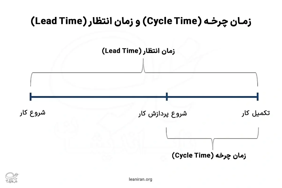 در دنیای پروژه: زمان چرخه برای یک فرآیند مدت زمانی است که یک کارت از ستون “برای انجام” به ستون “در حال انجام” منتقل میشود تا زمانی که به ستون “انجام شده” میرسد. اما زمان انتظار شامل جمع مدت زمان همه فرآیندها است. تشخیص تمایز این دو زمان خیلی مهم است و هدف همیشگی بهبود باید کاهش این دو زمان از طریق حذف اتلاف باشد.