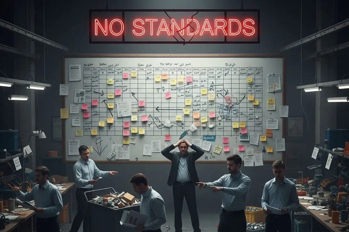 اولین قدم در استقرار سیستمهای نظارتی، استانداردسازی است تا بتوان دستورالعملها، نحوۀ انجام کارها و ملاحظات مربوط به هر کار را به طور شفاف تعریف کرد، آموزش داد و دیداری کرد. با تدوین استانداردهای هر کار/فرایند کارکنان درک میکنند که (1) چگونه کار را به درستی انجام دهند و (2) چگونه آن را به درستی ممیزی کنند. در دنیای تولید؛ استانداردها جلوی هر تجهیز یا روبهروی اپراتور نصب میشود تا هم خودش به راحتی آن را ببیند و هم کسی که قرار است کار را ممیزی کند. در دنیای پروژه؛ چکلیستها، گانتچارتها کنار بردهای کانبان نصب میشوند. همچنین استانداردهای هر فرایند بالای همان ستون چسبانده میشود تا همه بتوانند حرکت کار را ببینند و آن را مدیریت کنند.